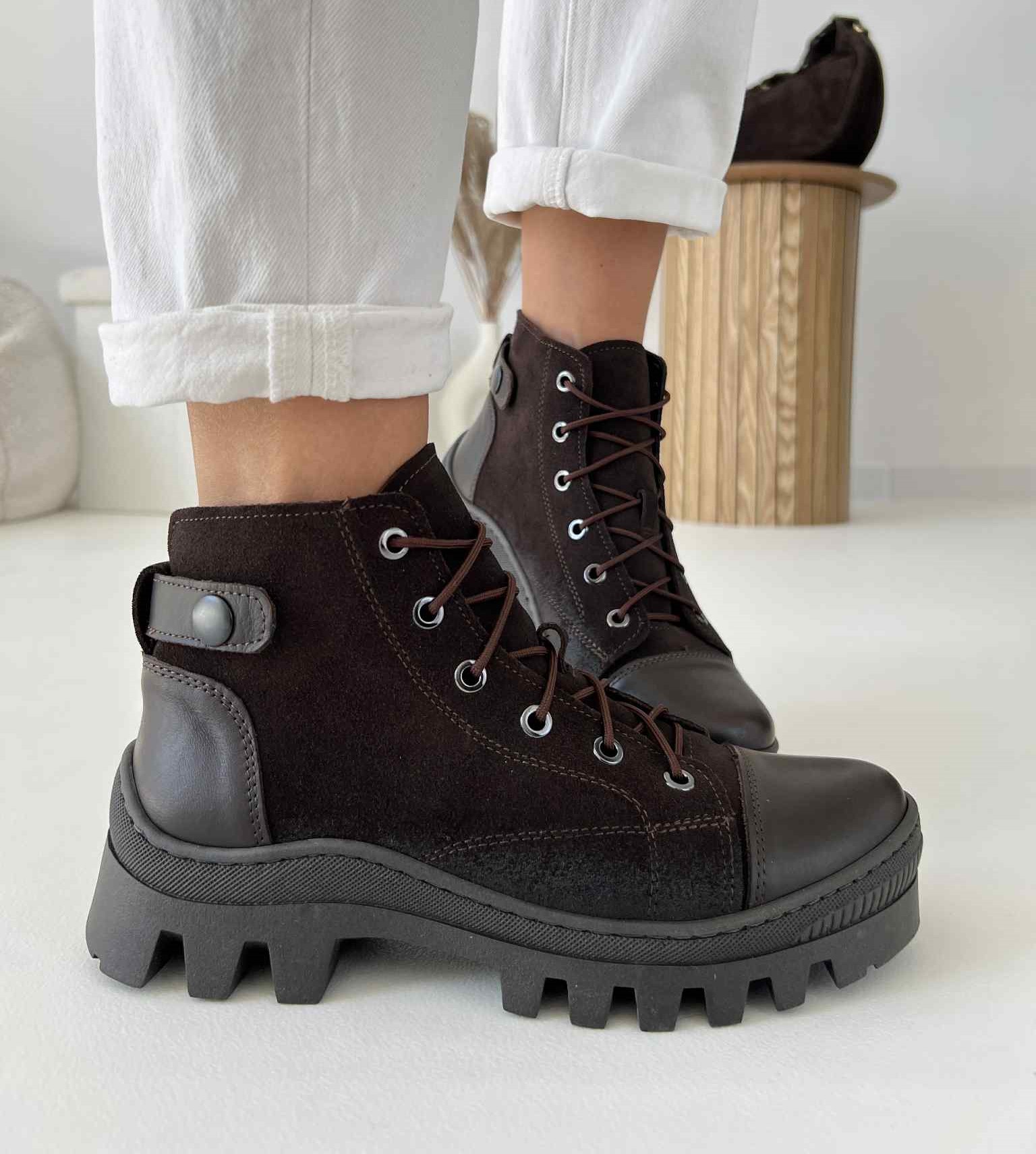 Botki Na Wyższej Podeszwie Evett Vorea Czekoladowe Skóra Naturalna