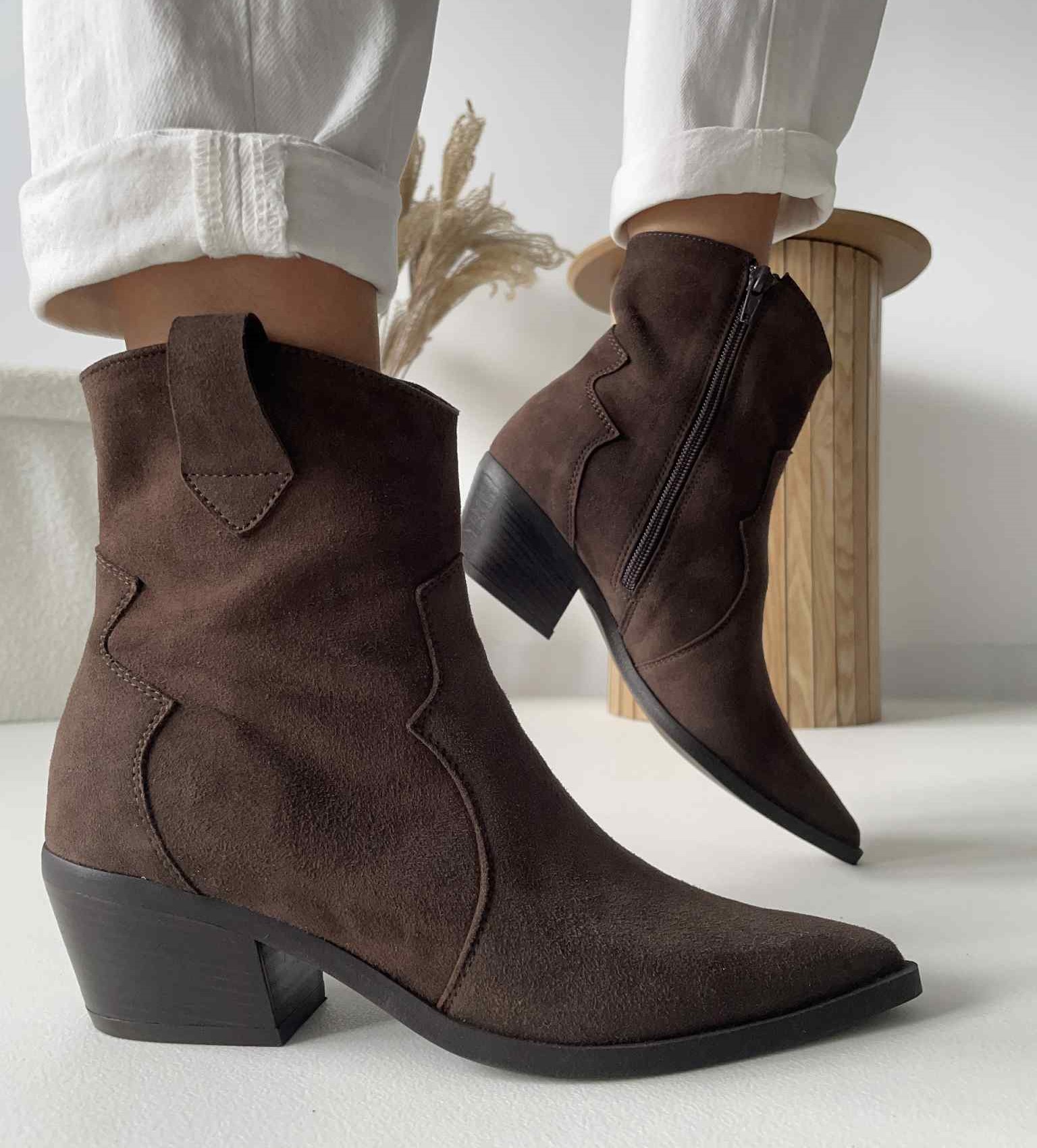 Botki Evett Cortena Czekoladowe Zamszowe Skóra Naturalna