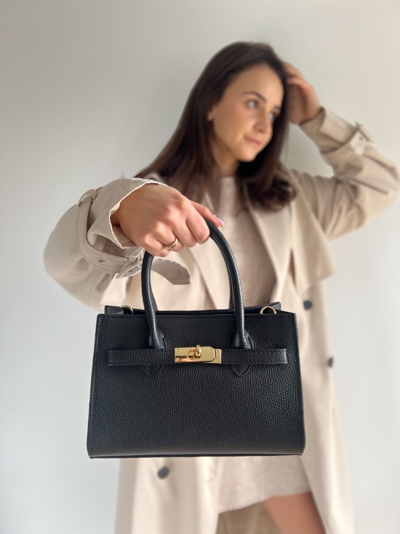- Ekskluzywne detale – złote zapięcie i staranne wykończenie podkreślają prestiż torebki.