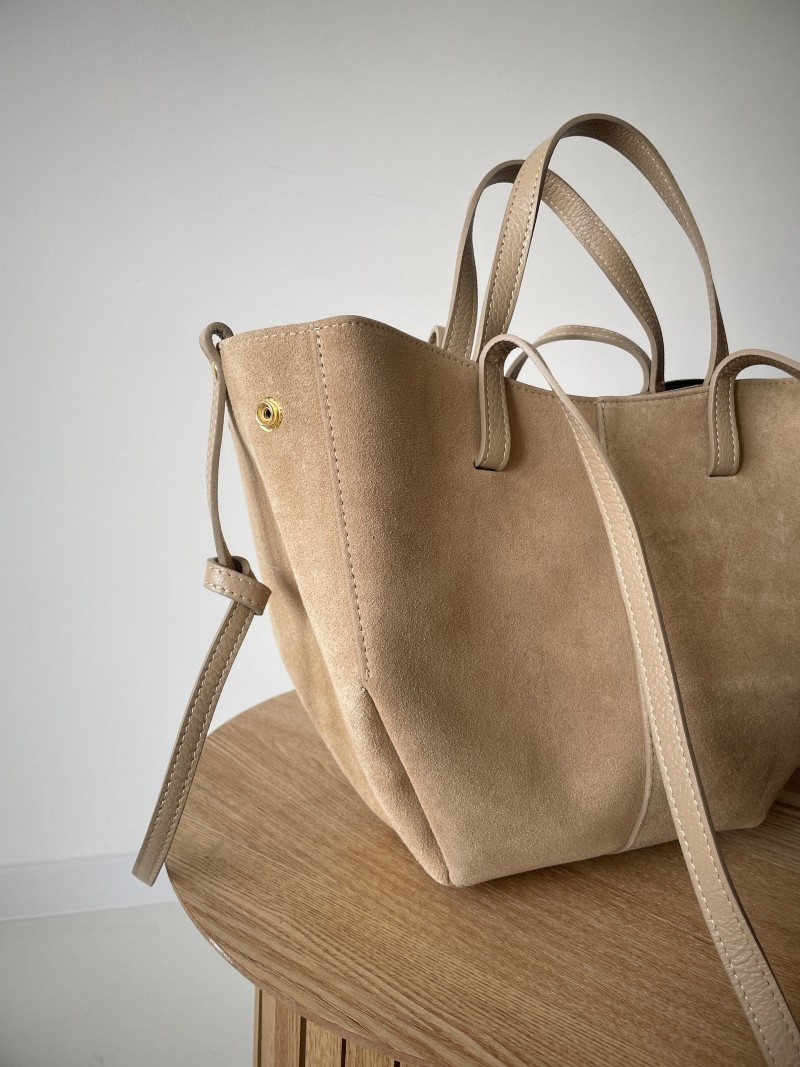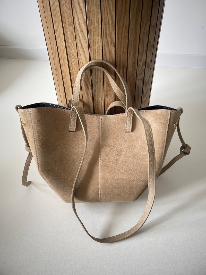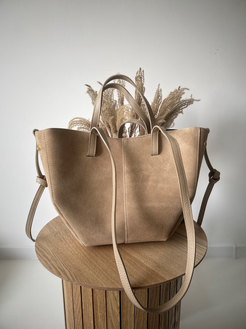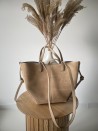 Model wyróżnia się minimalistyczną formą w stylu shopper bag, z dodatkowymi paskami bocznymi oraz dwoma wygodnymi uchwytami do noszenia w dłoni lub na ramieniu. Torebka jest pojemna, a jednocześnie lekka i doskonale sprawdzi się zarówno na co dzień, jak i podczas spotkań biznesowych czy wyjść ze znajomymi. Ponadczasowy odcień beżu pasuje do wszystkiego – od jasnych lnianych spodni po klasyczny trencz
