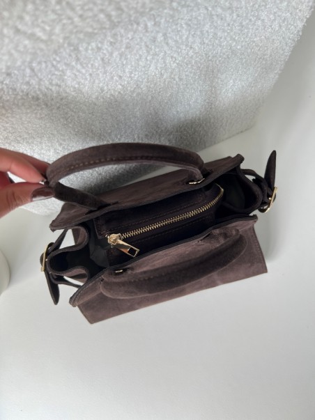 Dodaj klasy i szyku do swojej garderoby z naszą torebką damską wykonaną z wysokiej jakości naturalnej skóry zamszowej. Jej głęboki, czekoladowy odcień brązu sprawia, że to idealny dodatek zarówno do codziennych, jak i eleganckich stylizacji.