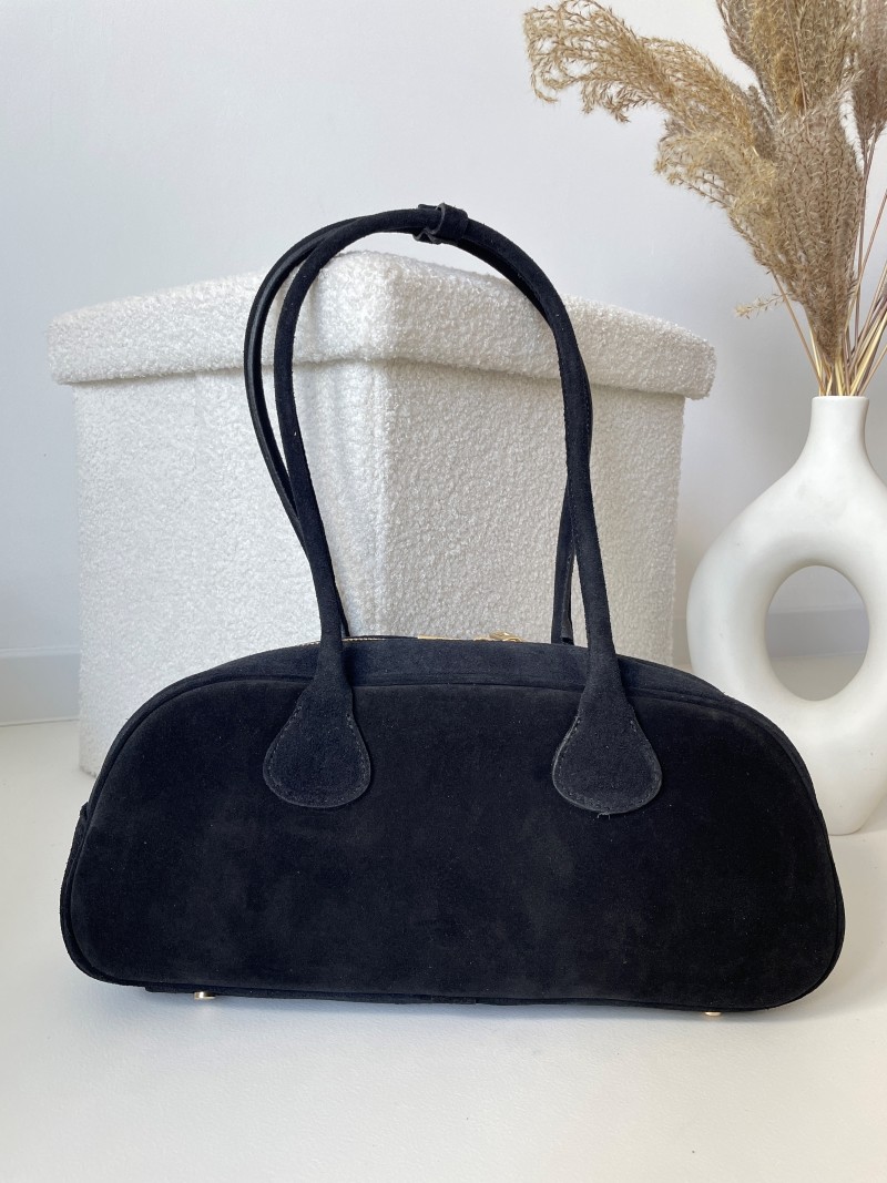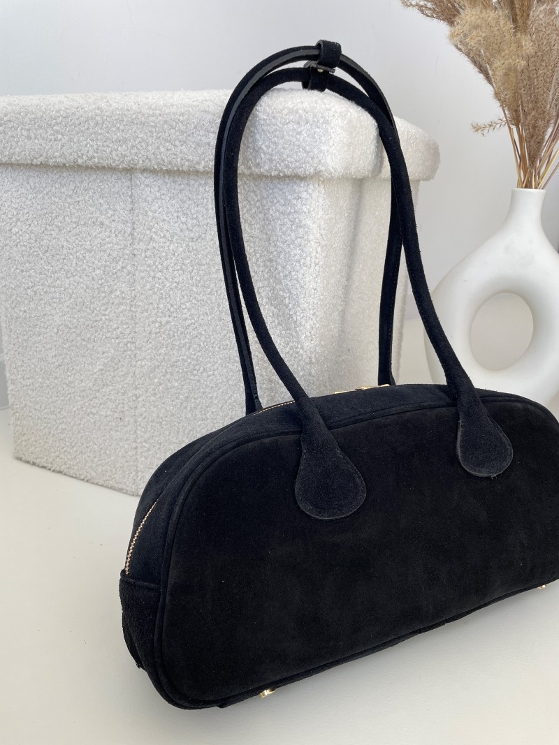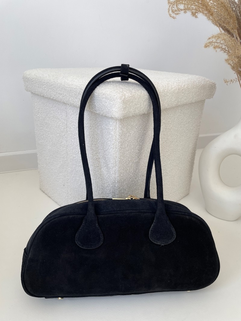 Torebka zachwyca głębokim kolorem czerni, który idealnie komponuje się z jesienno-zimową garderobą. Miękka w dotyku zamszowa powierzchnia dodaje elegancji i szyku, a solidne rączki zapewniają wygodne noszenie zarówno w dłoni, jak i na ramieniu.