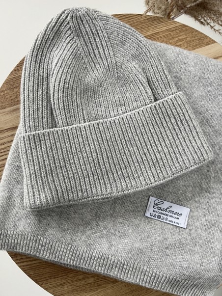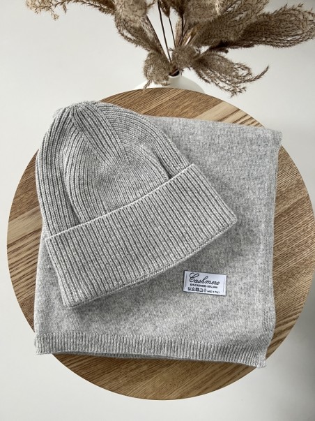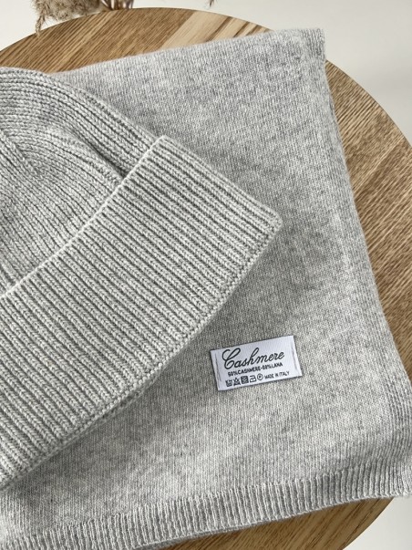 Komplet Czapka i Szalik z Kaszmiru i Wełny Szary - Made In Italy