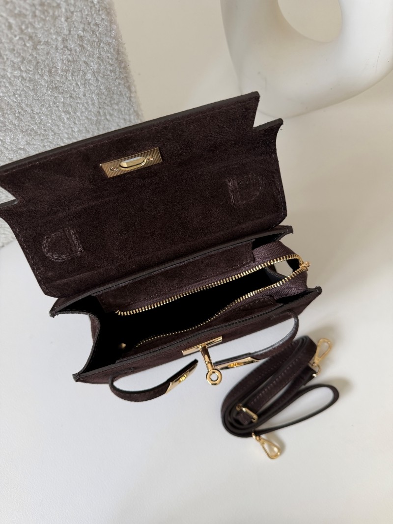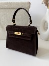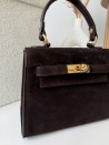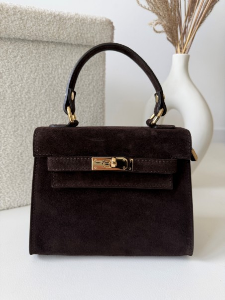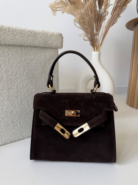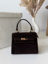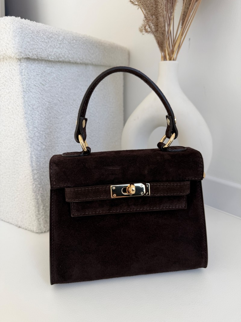 Elegancka torebka zamszowa Herme ze skóry naturalnej w kolorze czekoladowym