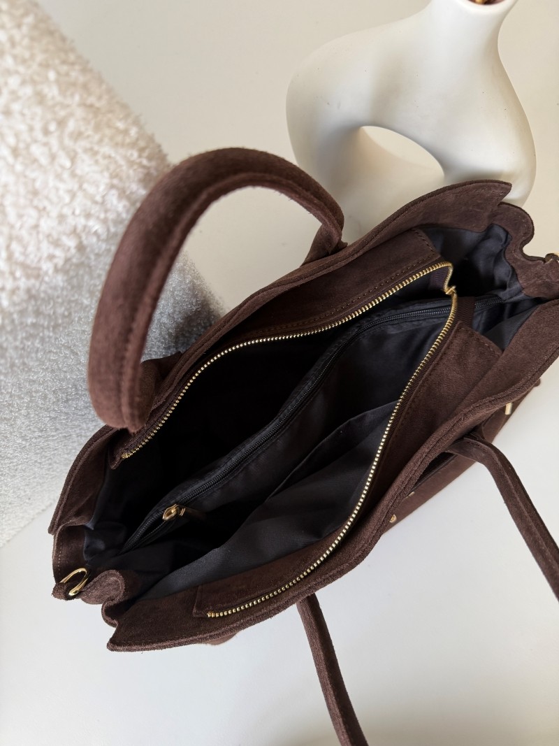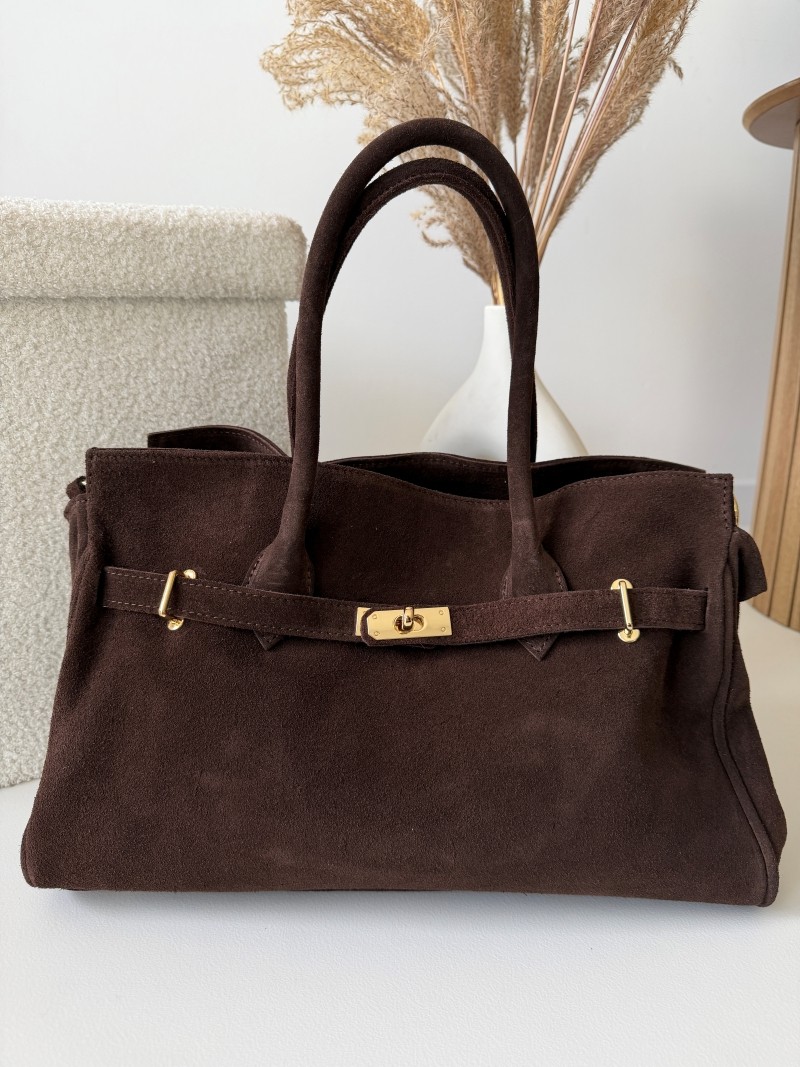 Czekoladowa torebka zamszowa to propozycja dla kobiet, które szukają ponadczasowego dodatku — idealna do pracy, na spotkania czy wieczorne wyjścia. Dzięki klasycznej formie i szlachetnej barwie, torebka świetnie komponuje się z jesiennymi oraz zimowymi outfitami.