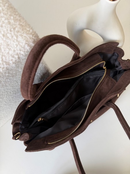 Torebka zamszowa Coco ze skóry naturalnej w kolorze czekoladowym – elegancja i ponadczasowy styl