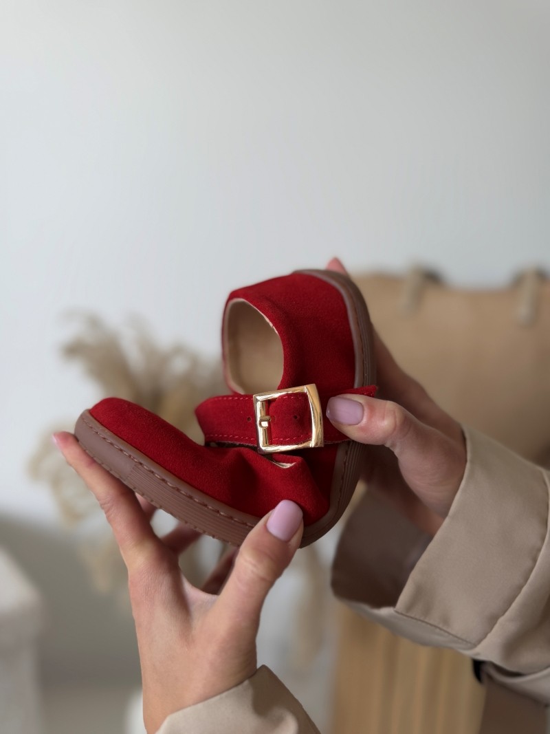 Regulowany pasek z subtelną klamrą stabilizuje stopę i dodaje modelowi klasycznego uroku w stylu mary jane. Intensywna czerwień pięknie podkreśla kobiecość i ożywia każdą stylizację – od codziennych zestawów po bardziej eleganckie looki.