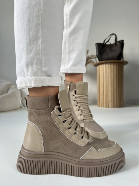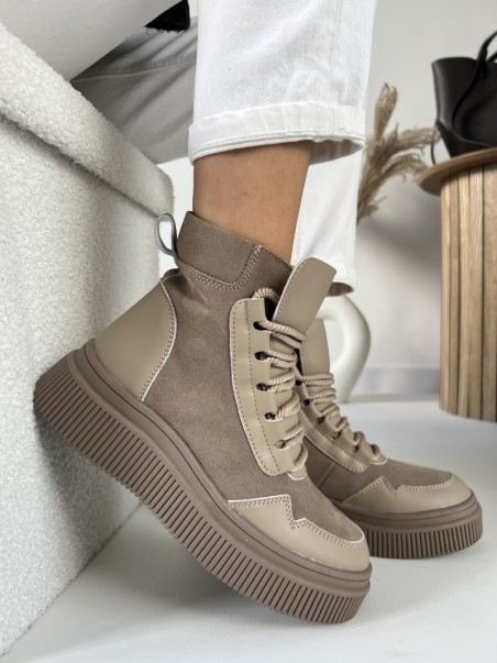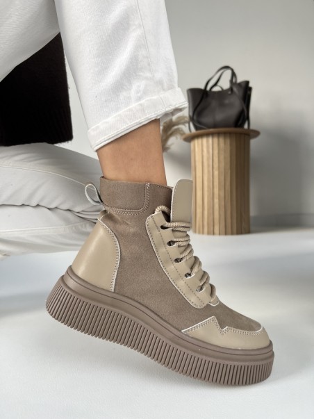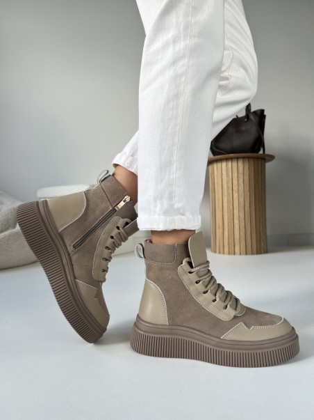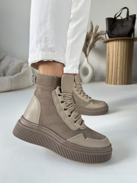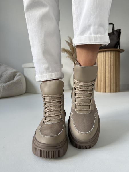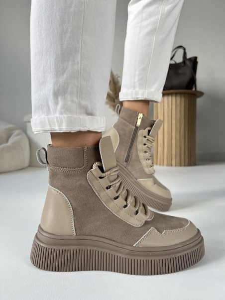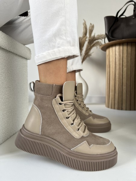Damskie sneakersy skórzane Silves beżowe – lekko ocieplane