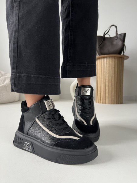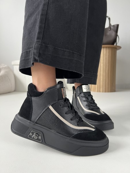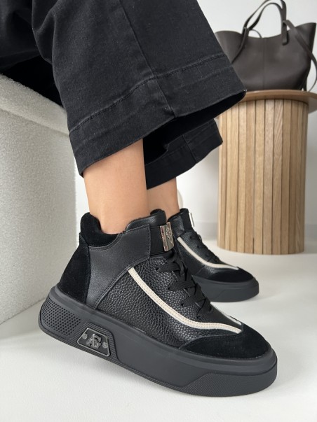 Wyższa cholewka subtelnie otula kostkę, zapewniając ciepło i stabilność w chłodniejsze dni, a delikatne ocieplenie wewnątrz sprawia, że te sneakersy doskonale sprawdzą się jesienią i zimą.