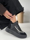 Stylowy detal w postaci metalowego akcentu i kontrastowego paska nadaje im charakteru, a uniwersalny czarny kolor świetnie komponuje się zarówno z jeansami, jak i casualowymi stylizacjami.