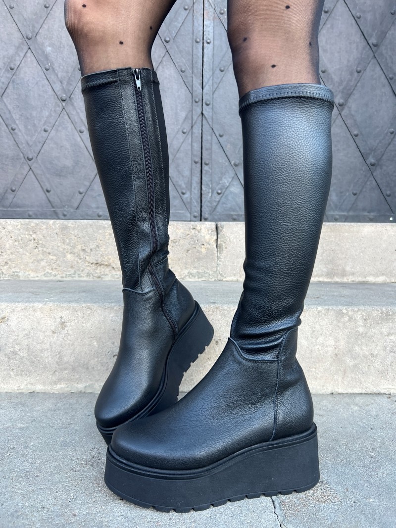 Czarne kozaki na koturnie to zdecydowanie model który każda z nas musi posiadać w swojej garderobie
