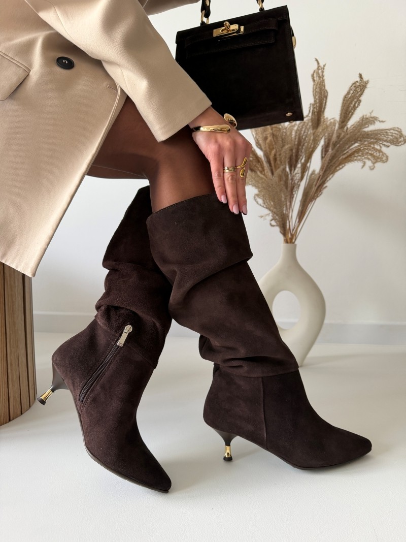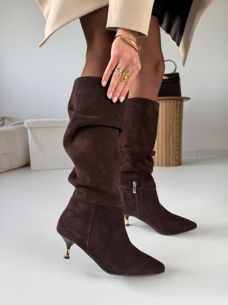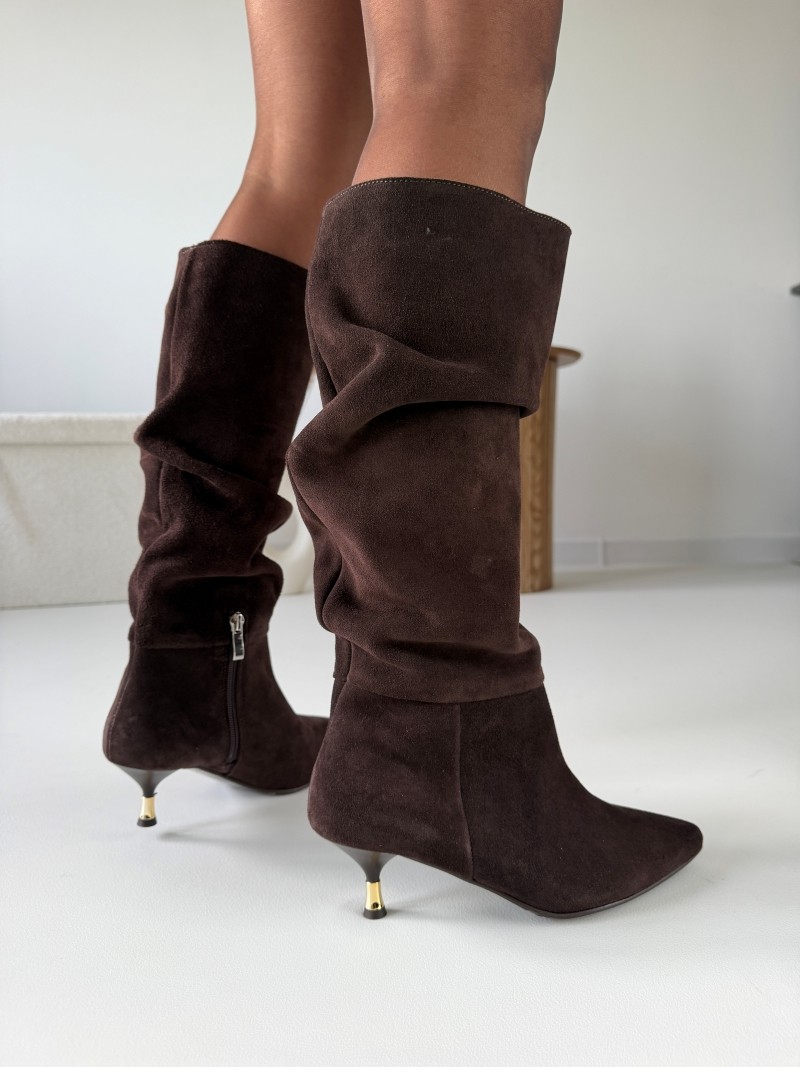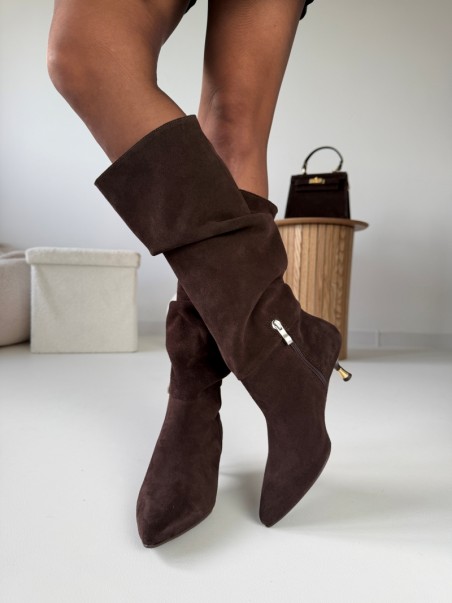 Eleganckie kozaki zamszowe marszczone Evett Amara- modne, lekkie i wygodne
