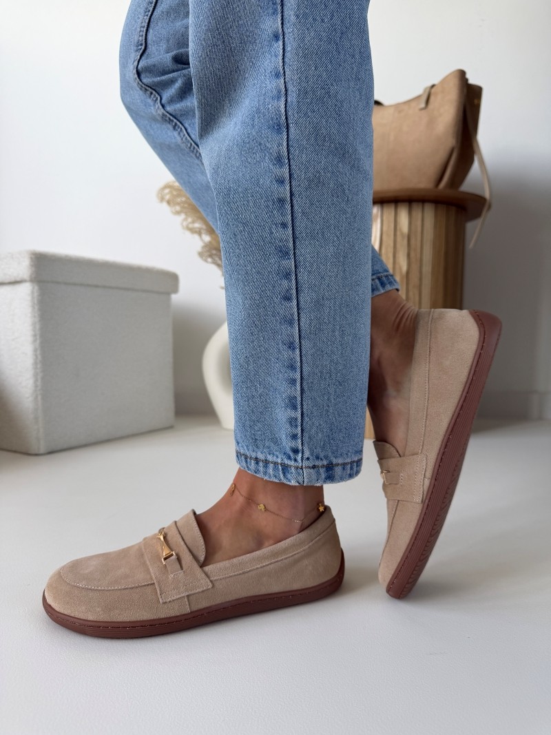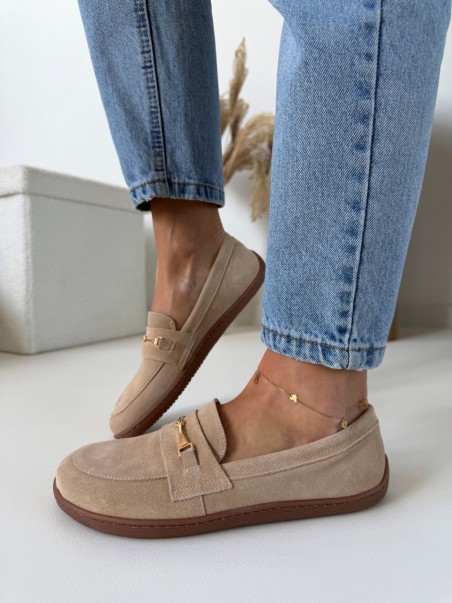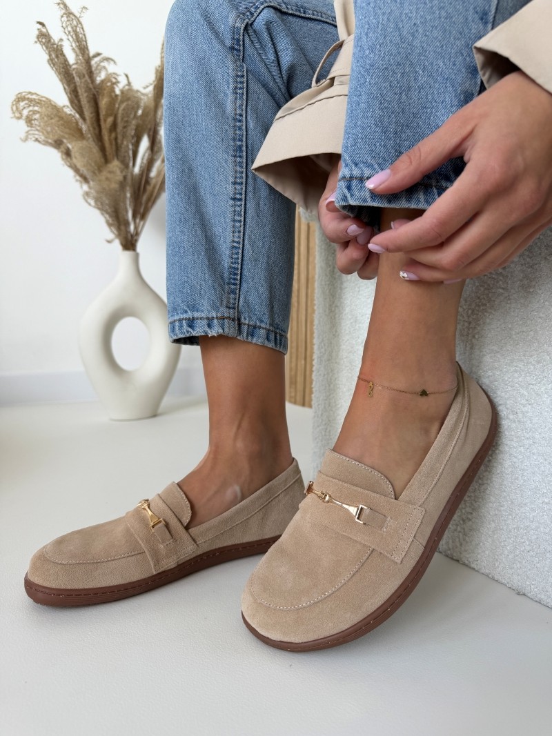 Beżowe mokasyny barefoot ze skóry naturalnej – naturalny komfort każdego dnia