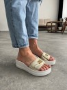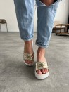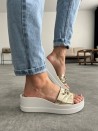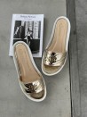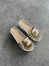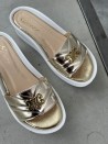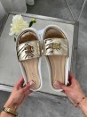 W przedniej części zastosowano złotą ozdobę która świetnie podkreśla design klapków