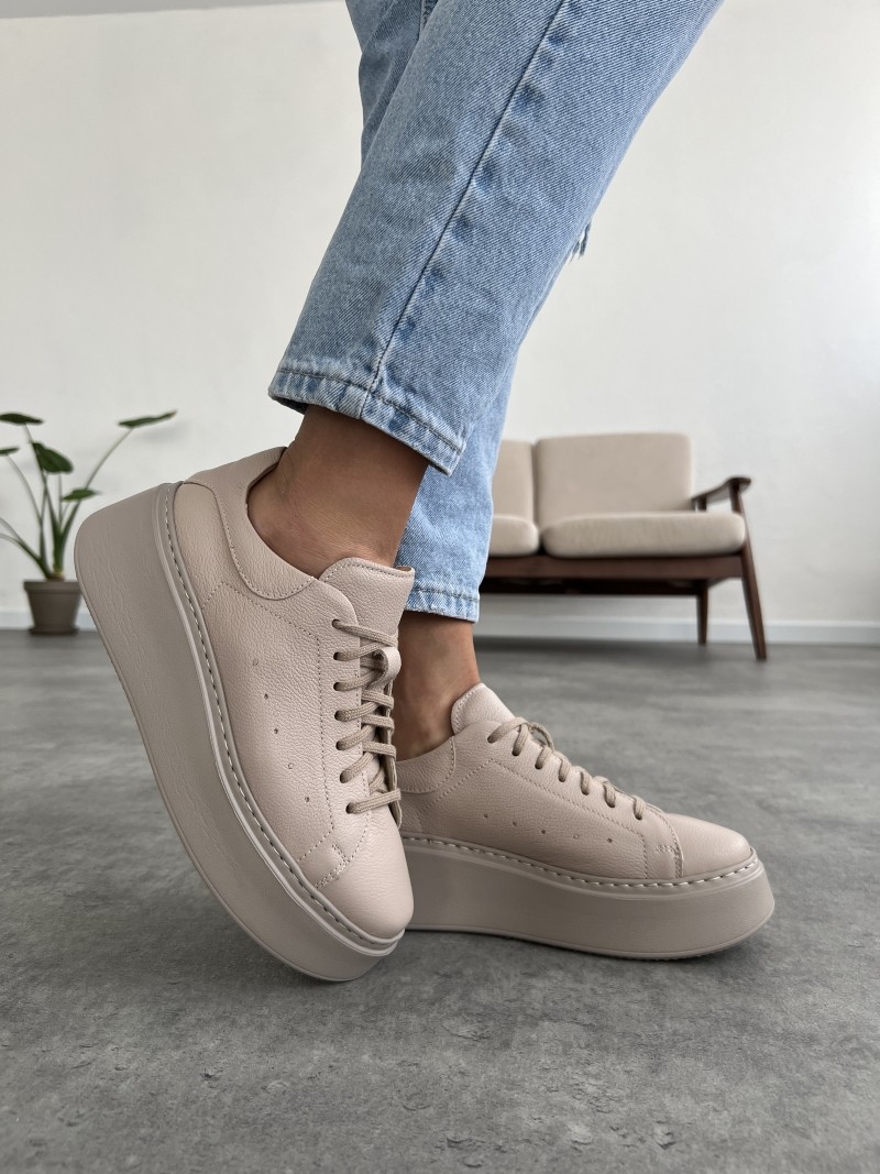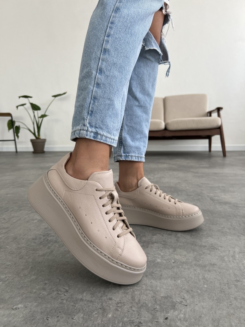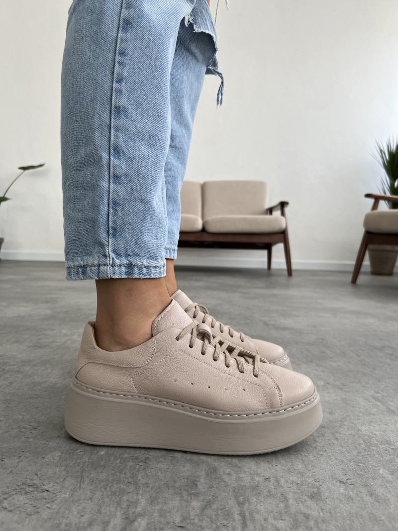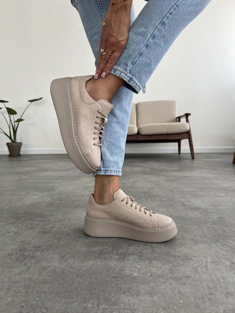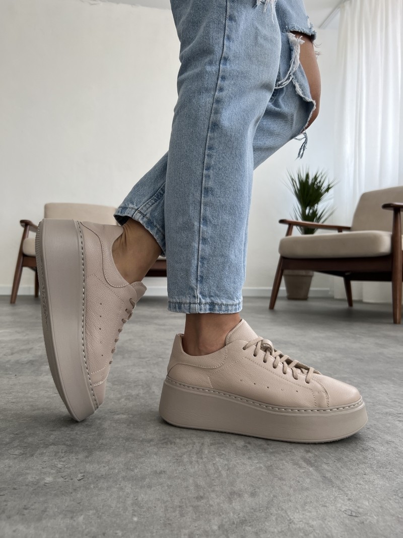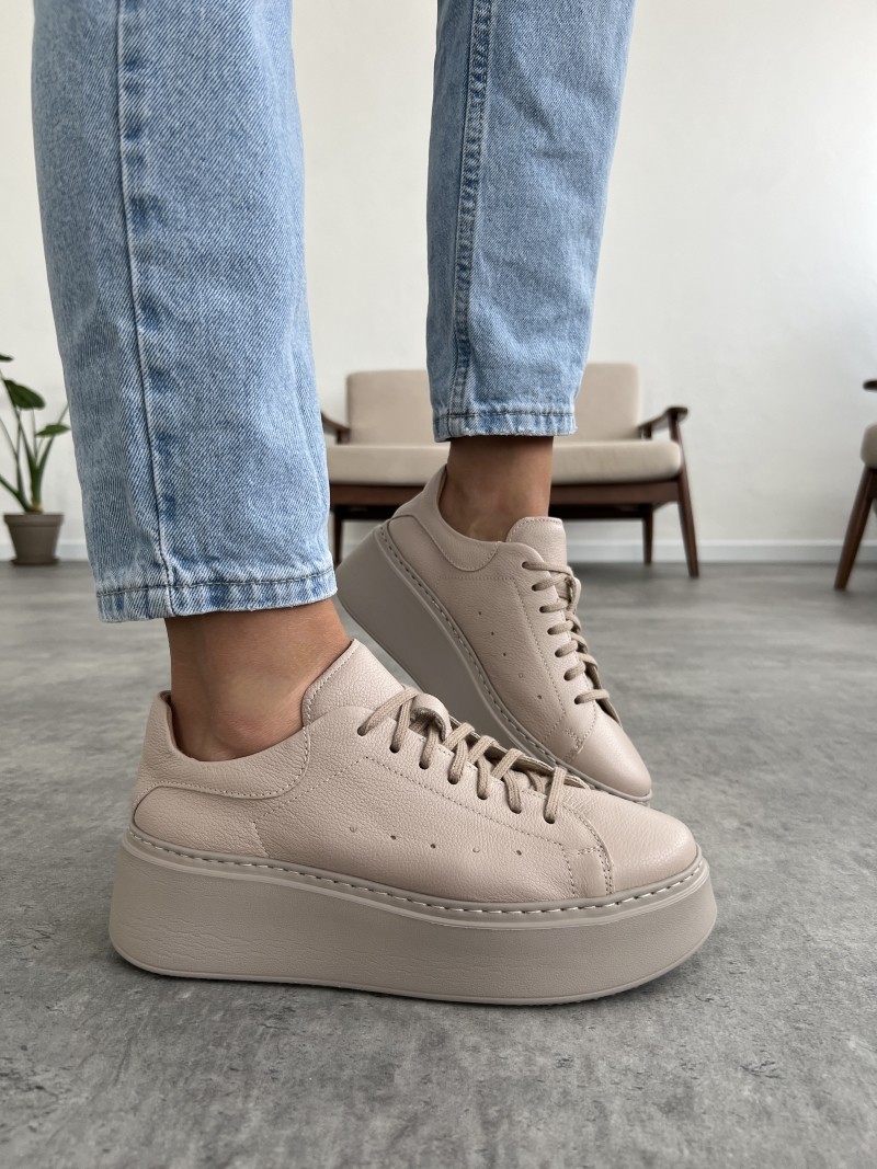 Nasze beżowe sneakersy ze skóry naturalnej z pewnością dodadzą uroku oraz podkreślą każdą Twoją stylizację.