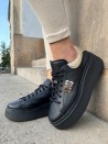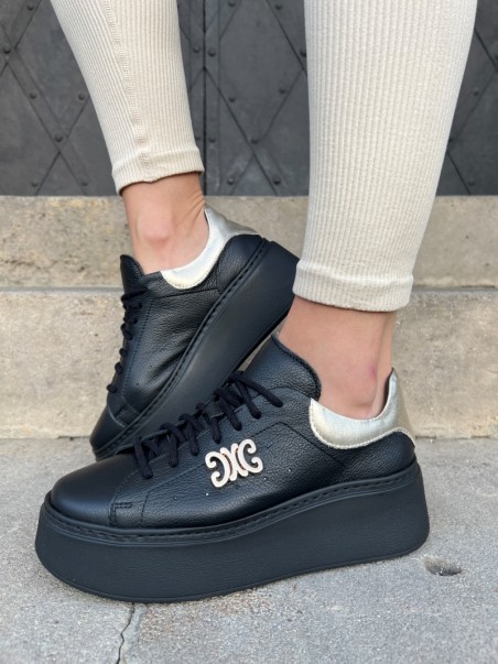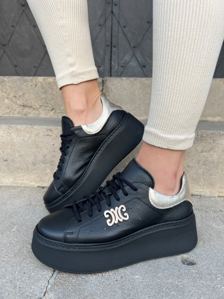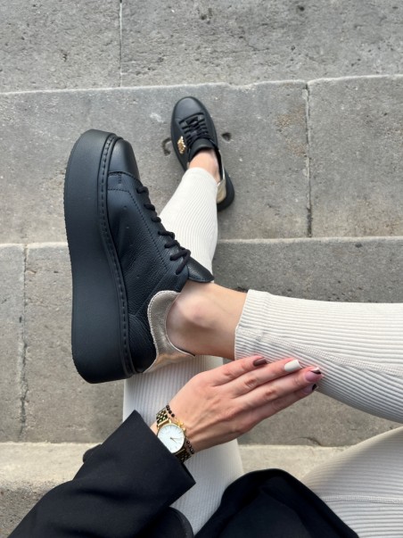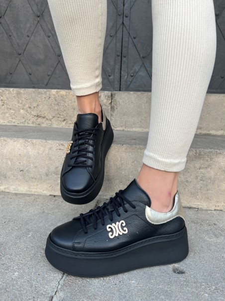 Sneakersy damskie Evett Pianoro w kolorze czarnym ze złotymi dodatkami