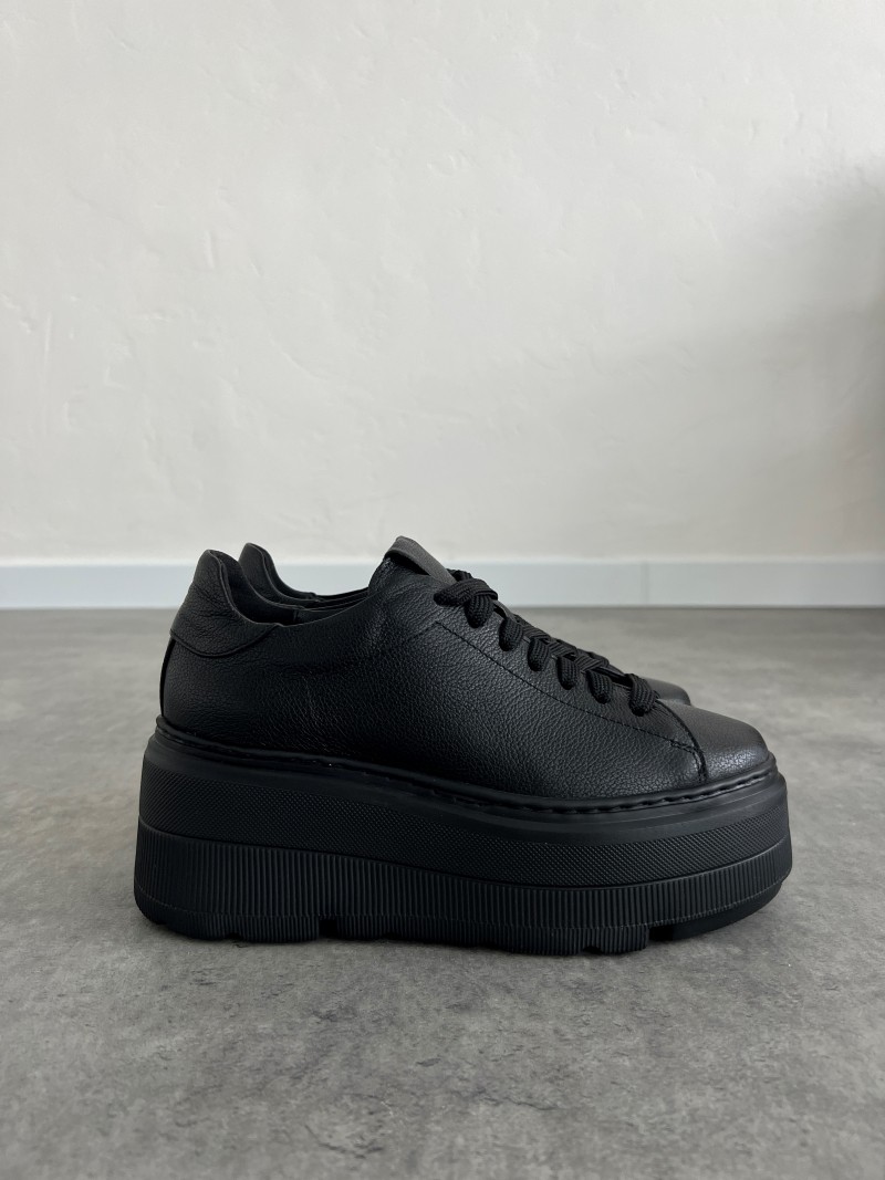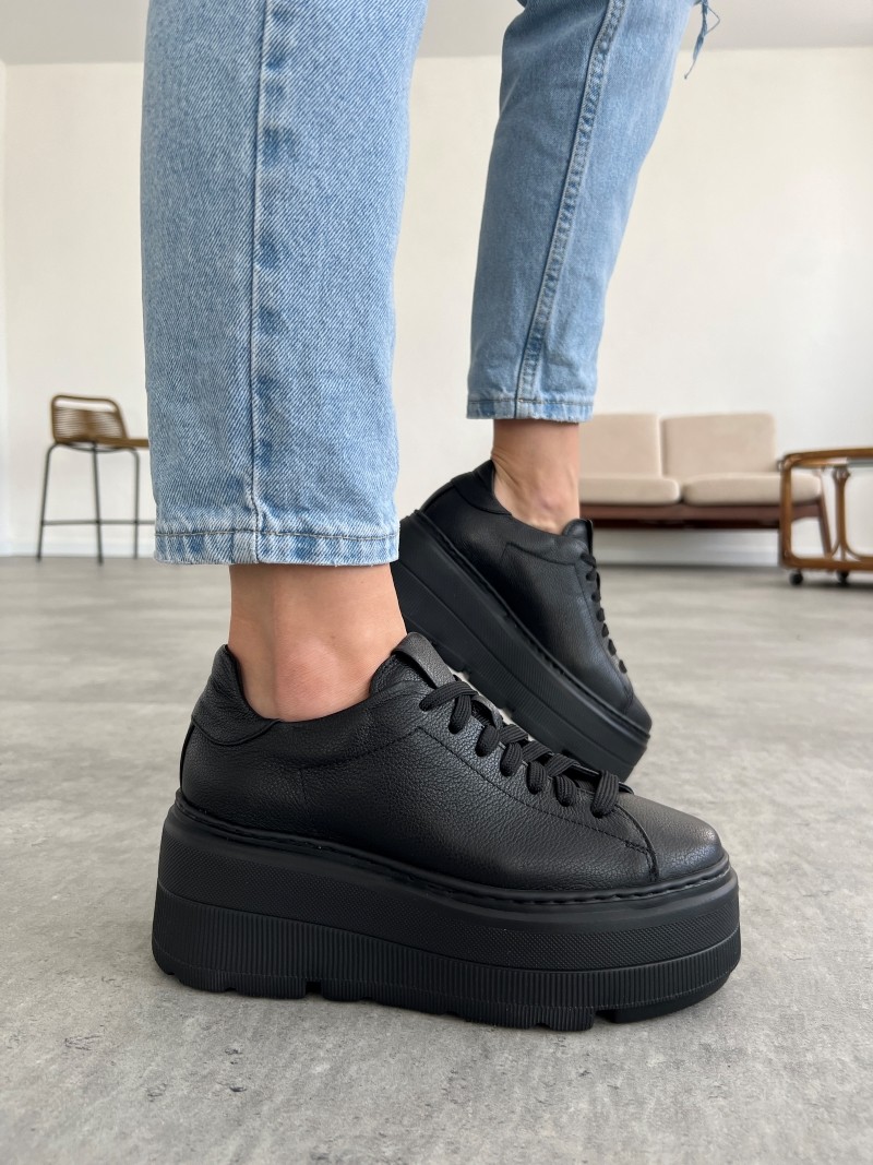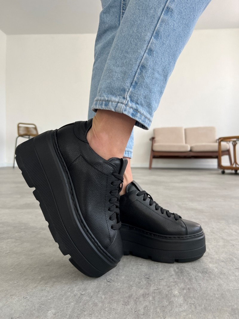 Odkryj niepowtarzalny styl i komfort dzięki naszym luksusowym czarnym trampkom na wyższej podeszwie ze skóry naturalnej
