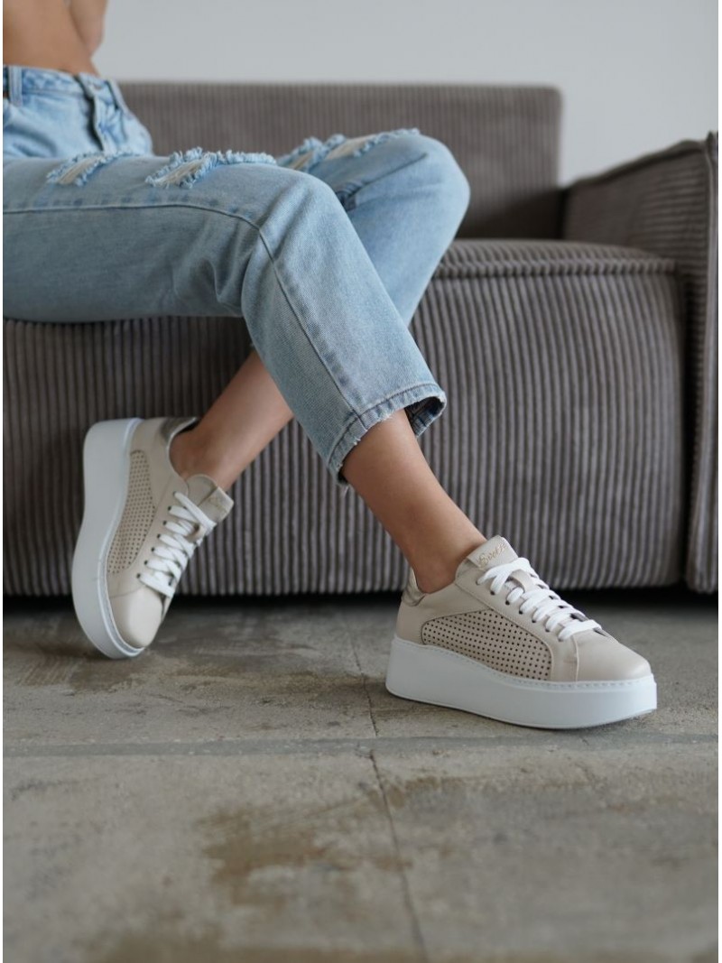 Sneakersy damskie Evett Milano w kolorze beżowym