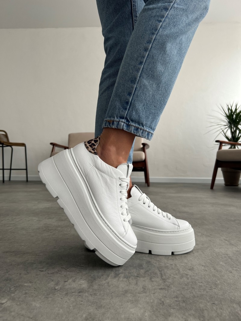 Odkryj niepowtarzalny styl i komfort dzięki naszym luksusowym białym trampkom na wyższej podeszwie ze skóry naturalnej