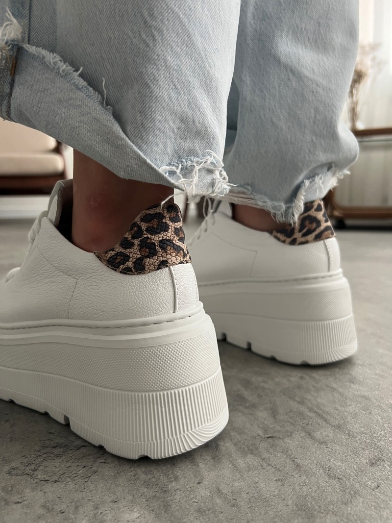 Sneakersy damskie Evett Sentimo w kolorze białym z wstawką w kolorach panterki