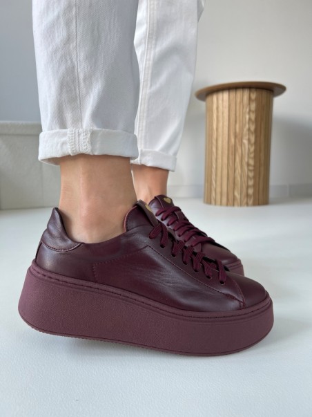 Idealnie dopasowane skórzane sneakersy Evett Raffel V2 w kolorze burgundowym