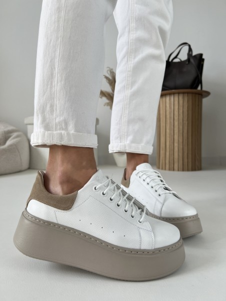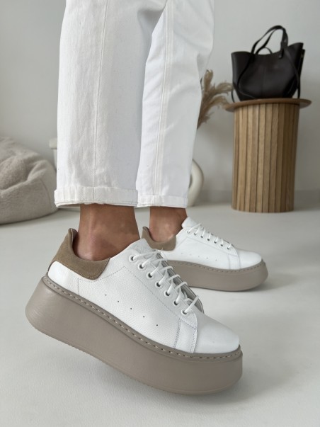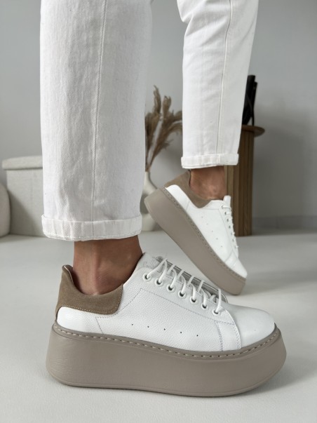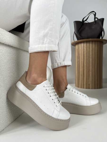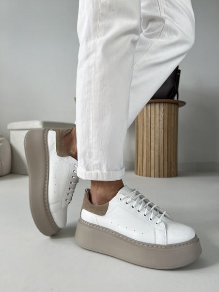 Odkryj niepowtarzalny styl i komfort dzięki naszym luksusowym białym sneakersom na wyższej podeszwie ze skóry naturalnej