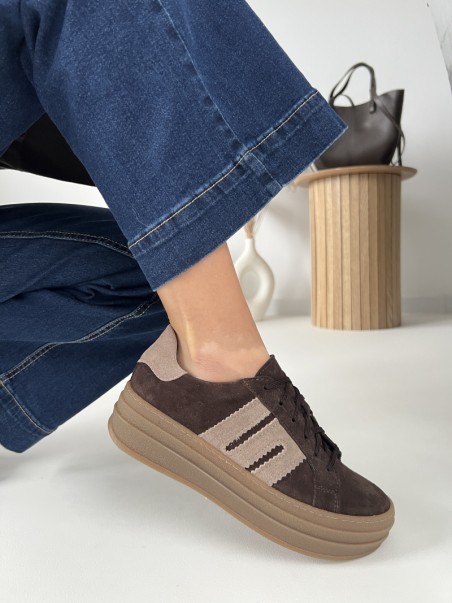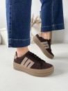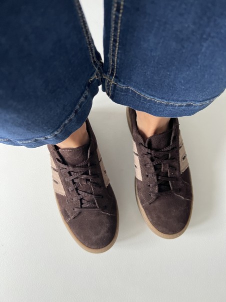 Sneakersy damskie w kolorze czekoladowym z beżowymi akcentami