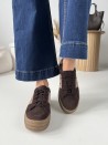 Sneakersy Na Wyższej Podeszwie Evett Montero Czekolada Skóra Naturalna