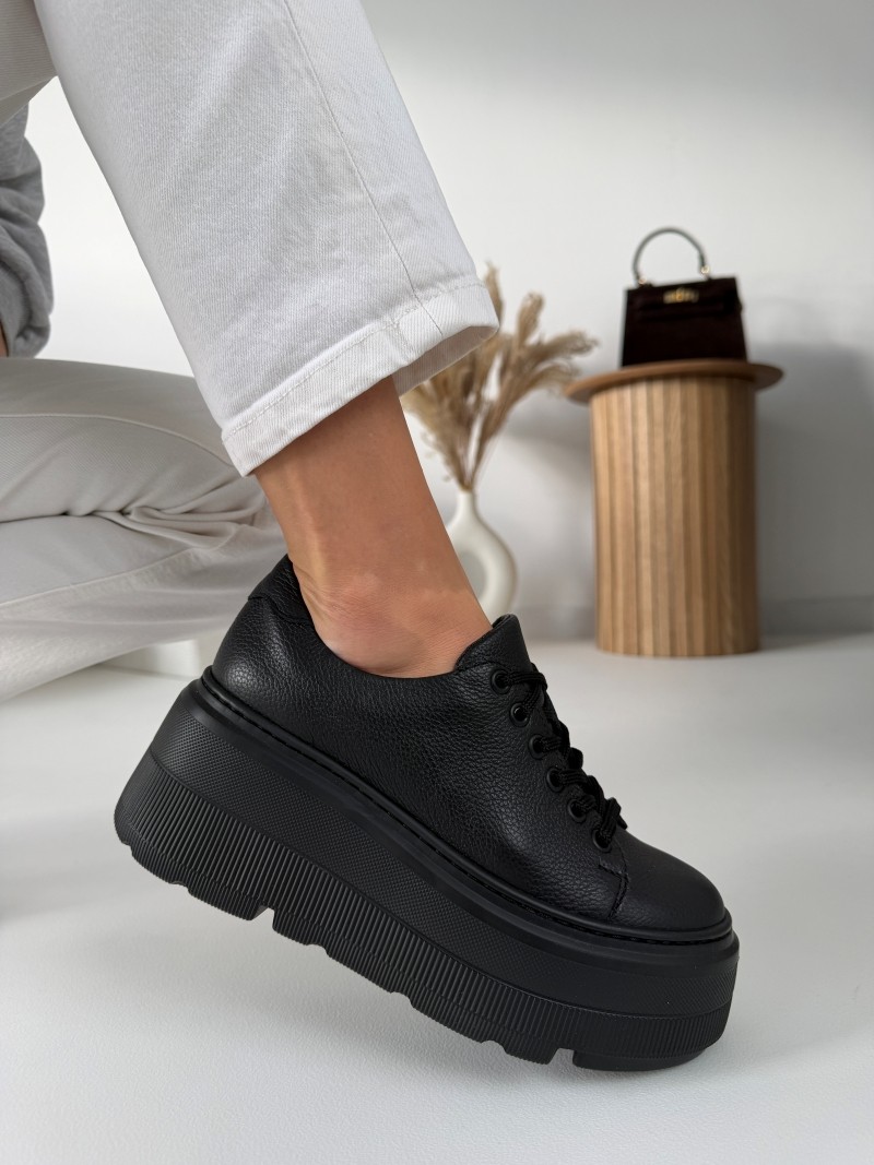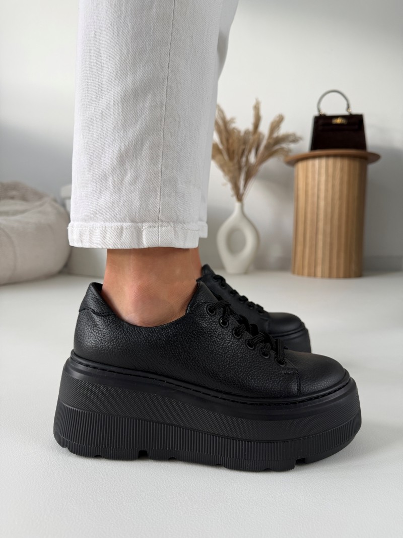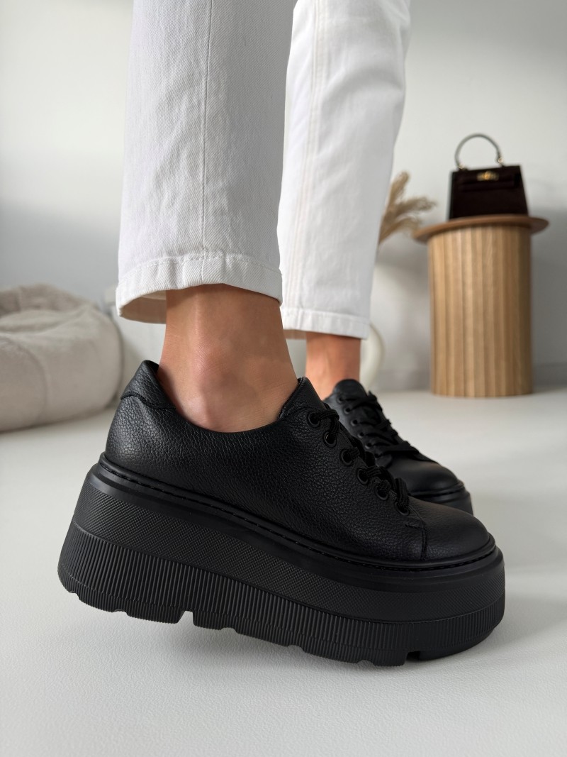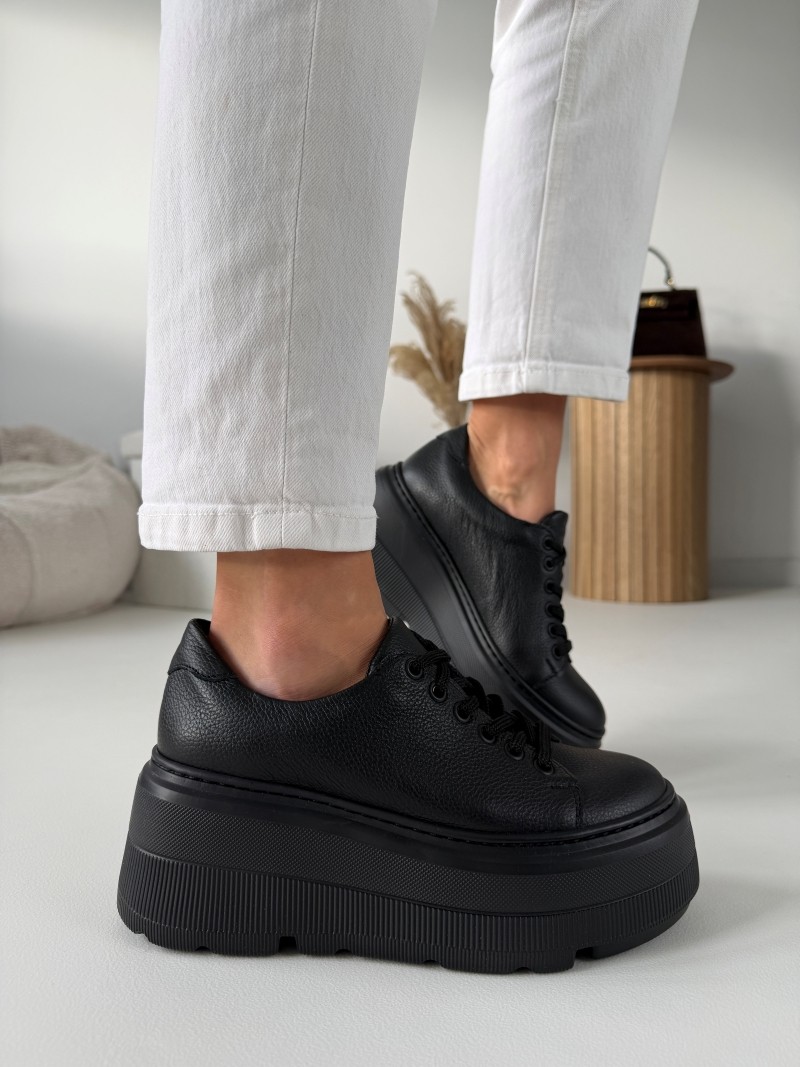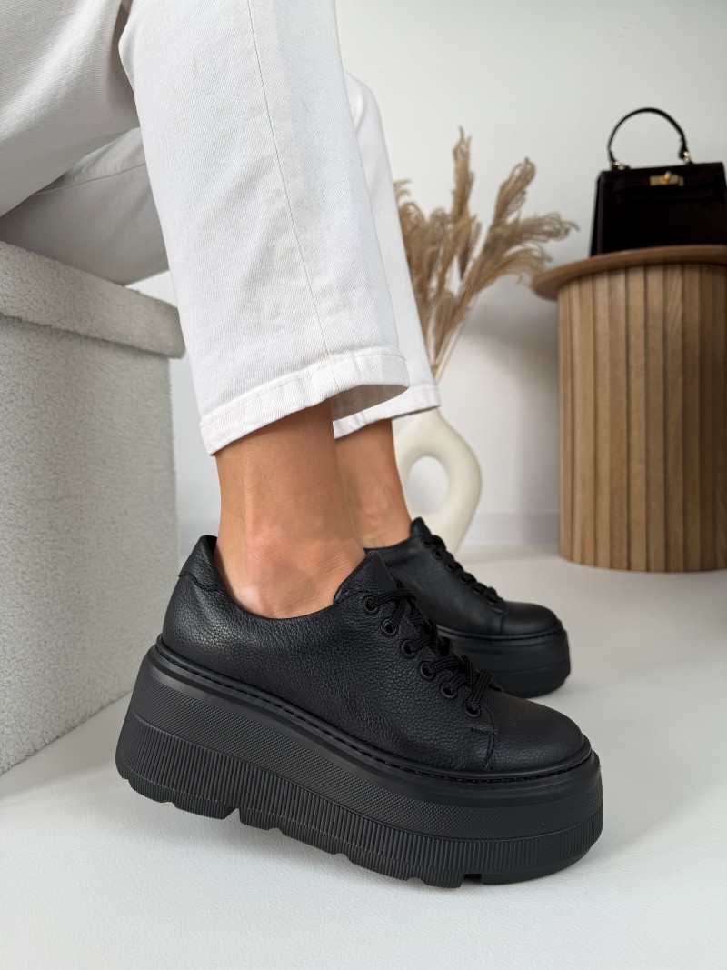 Odkryj niepowtarzalny styl i komfort dzięki naszym luksusowym czarnym trampkom na wyższej podeszwie ze skóry naturalnej