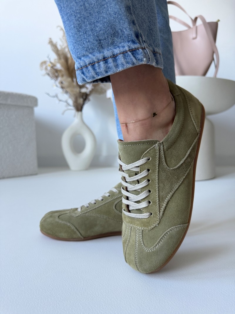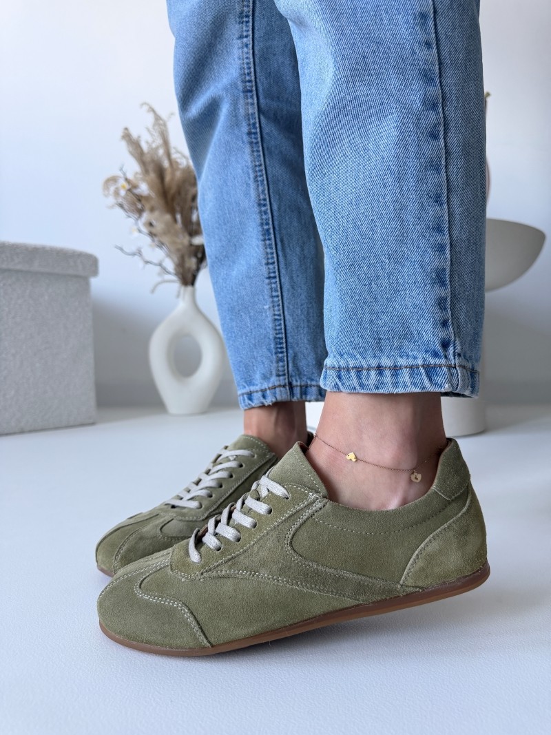 Inspirowane estetyką lat 70. i 80., te skórzane buty sportowe w stylu vintage natychmiast przyciągają wzrok swoją minimalistyczną sylwetką i ciepłą, ziemistą kolorystyką. Miękki, welurowy zamsz o aksamitnej fakturze nadaje im charakteru, którego nie znajdziesz w masowej produkcji.