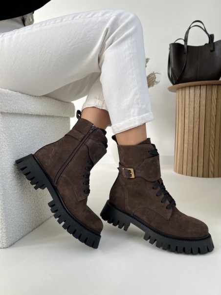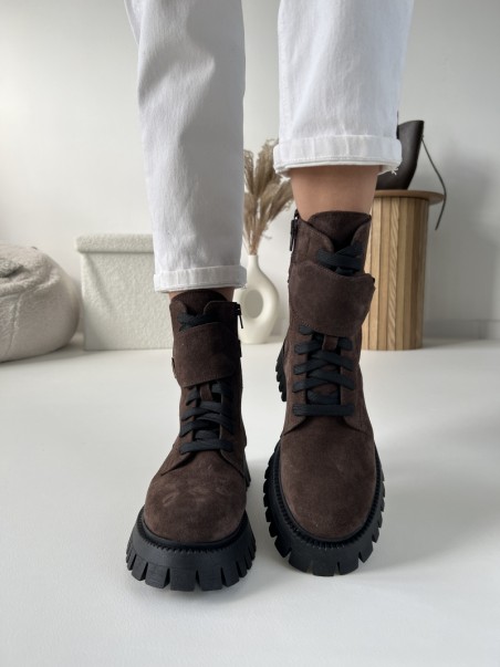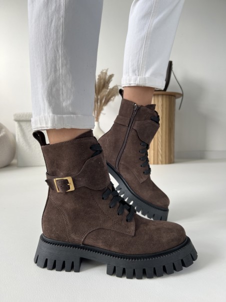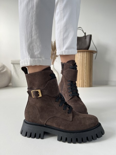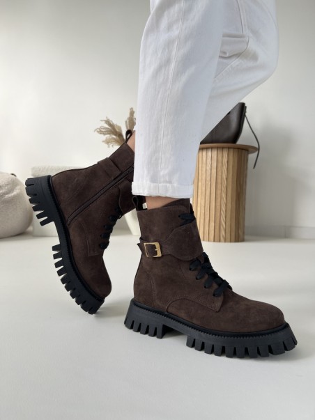 Wygodne Traperki Evett Accera Czekolada Lico Skóra Naturalna Nieocieplane